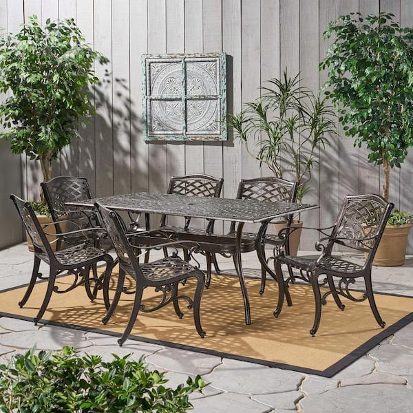 7-Piece Metal Outdoor Dining Set with Rectangular Table, Bronze