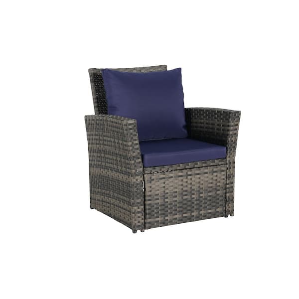 7-Pieces Rattan Outdoor Conversation Set with Blue Cushions, 9-Seater