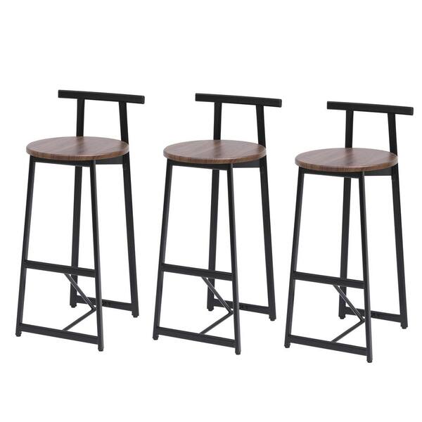 Barstool Counter Height Back Armless Walnut Brown Wood Outdoor Dining Chair in Black (Set of 3)
