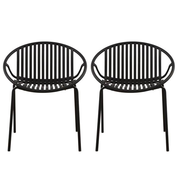 Black Stackable Modern Patio Outdoor Dining Chairs, Metal Legs and Plastic backrest (2-Pack)
