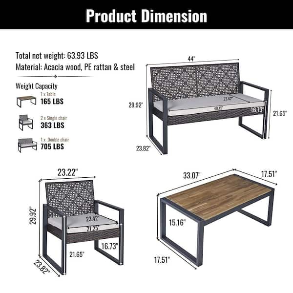 Brown 4-Piece Acacia Wood Patio Conversation Deep Seating Set with Cushion Guard