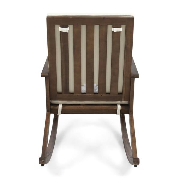 Brown Acacia Wood Outdoor Rocking Chair with Gray Cushion (1-Pack)