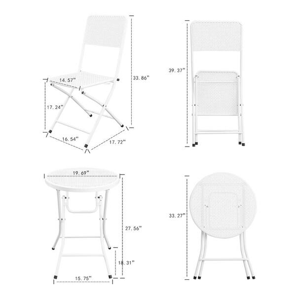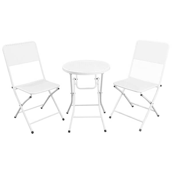 Folding White 3-Piece Metal Patio Conversation Set Bistro Set