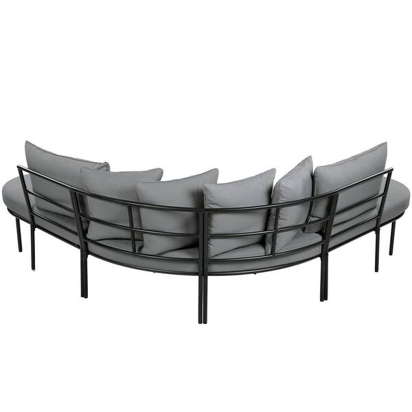 Gray 4-Piece Metal Patio Conversation Sectional Seating Set with Cushion Guard Gray Cushions​