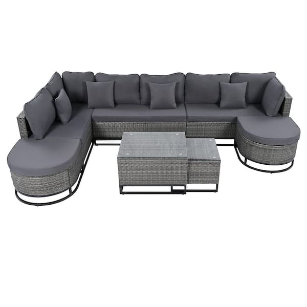 Gray 7-Piece Wicker Patio Sectional Seating Set with Gray Cushions​