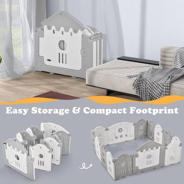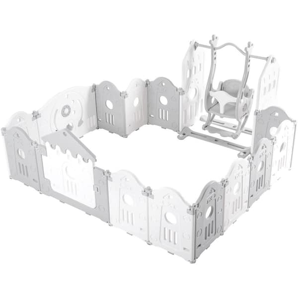 Gray Kids Playset Activity Center Baby Playpen for Toddler with Freestanding Baby Swing