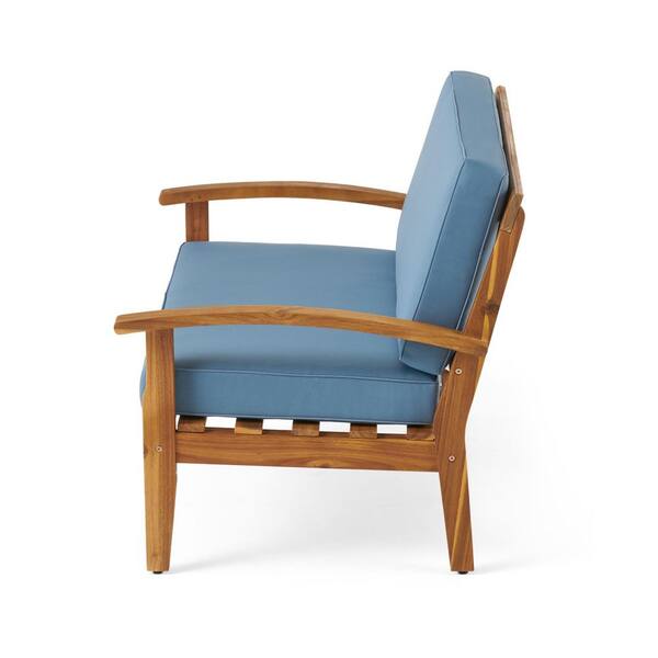 Natural Teak Outdoor Lounge Set with Blue Cushions and Acacia Table (2-Piece)​