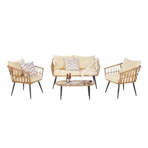 Outdoor 4-Piece Wicker Patio Conversation Set with Beige Cushions