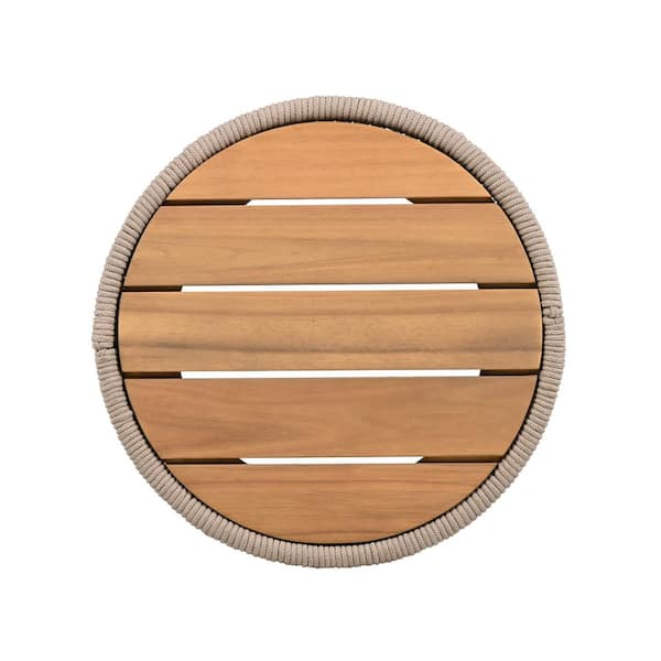 Wood and Brown Rope Outdoor Chaise Lounge Set of 5 with Side Table and Beige Cushions, Adjustable Backrest