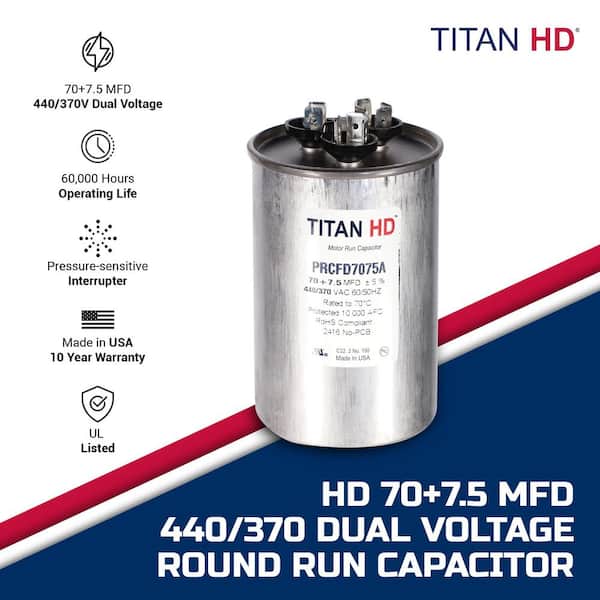 70 Plus 7.5 MFD, 440-Volt/370-Volt Dual Voltage Round Run Capacitor