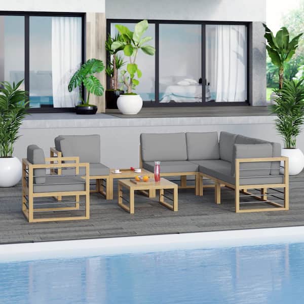 8-Piece Aluminum Outdoor Conversation Set with Gray Cushions
