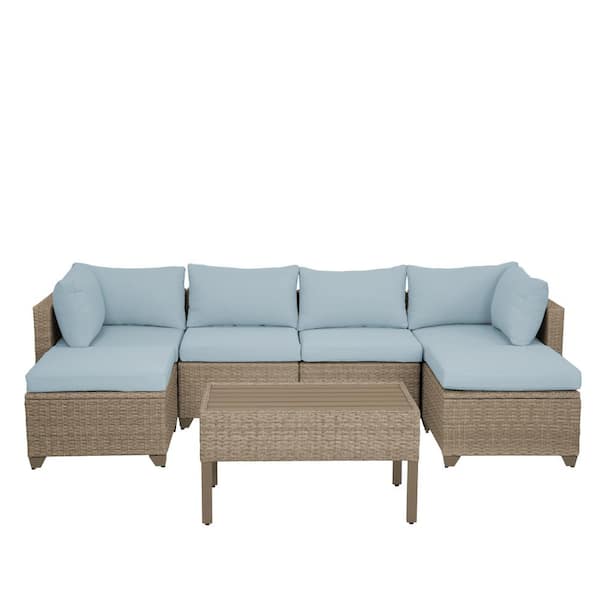 Maui 7-Piece Wicker Patio Conversation Set with Sky Blue Cushions