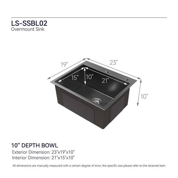 TMS 23 in. L x 19 in. W Black Drop-in Single Bowl Stainless Steel Kitchen Sink with Strainers