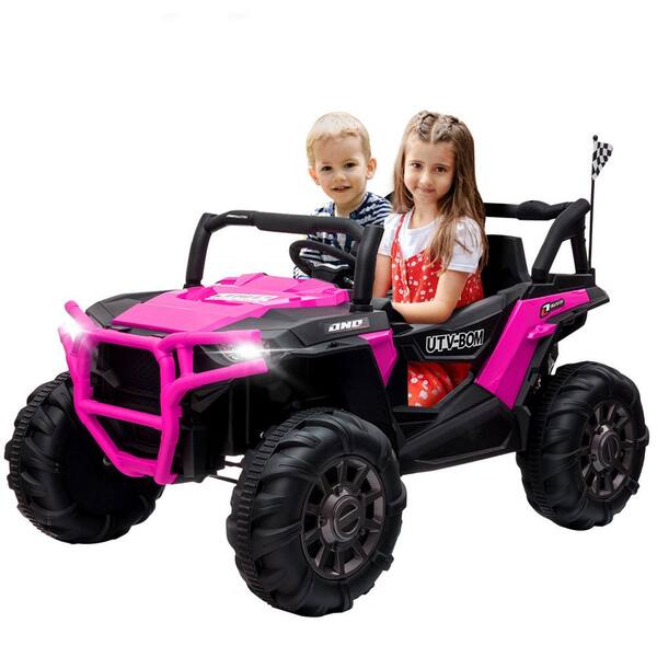 12-Volt Ride On Truck Kids Electric Car 2 Seater Battery-Powered SUV with MP3/3 Speeds/LED Lights/Bluetooth, Pink