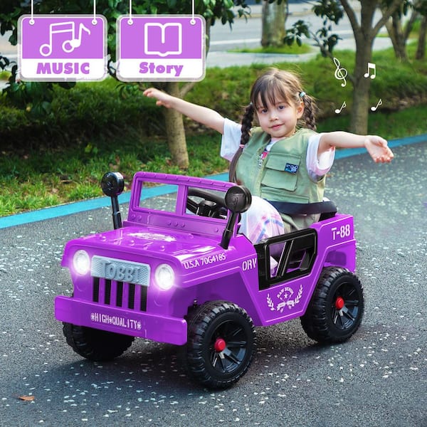 12-Vot Kids Ride on Electric Truck with LED Lights, Horn and Music, Purple