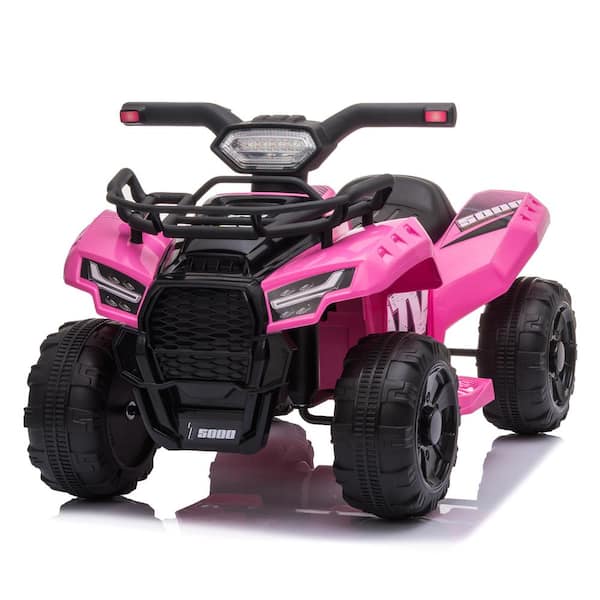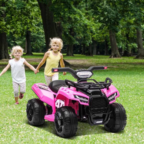 6-Volt Kids Ride On ATV Electric 4 Wheeler ATV Quad Car with LED Lights and Storage Basket, Pink