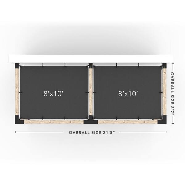 8 ft. x 20 ft. Double Wall Mount Pergola Kit with 2 Graphite Shade Sails, for 6x6 Wood