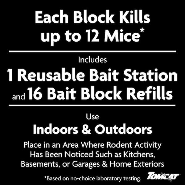 Mouse Killer, Child and Dog Resistant, 1 Refillable Indoor/Outdoor Station and 16 Poison Block Refills, Animal Bait