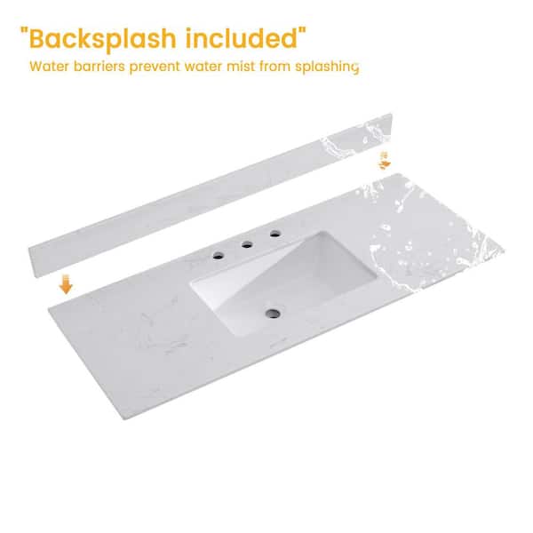 Modern 48 in. W x 18.9 in. D Engineered Stone Countertop White Rectangular Single Sink Bathroom Vanity Top in White
