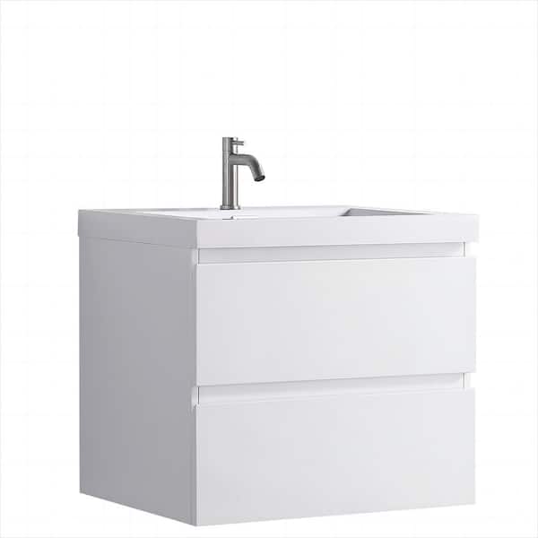 23.74 in. W x 19.7 in. D x 21.65 in. H Single Sink Floating Bath Vanity in White with White Ceramic Top