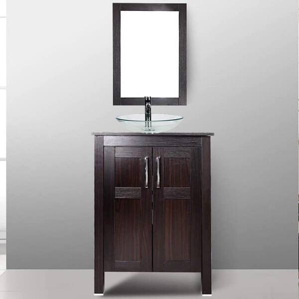 24 in. W x 19 in. D x 32.3 in. H Single Sink Bath Vanity in Brown with Top and Mirror