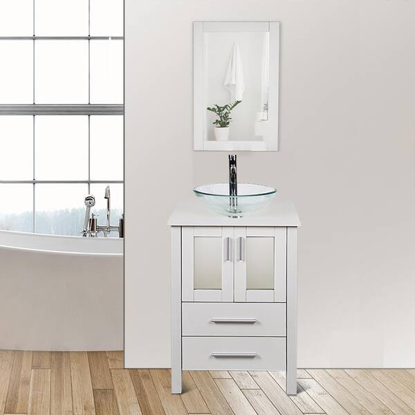 24 in. W x 19 in. D x 32.5 in. H Single Sink Bath Vanity in White with White Wood Top and Mirror