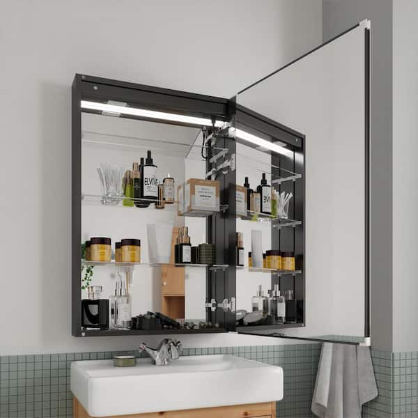 24 in. W x 36 in. H Rectangular Black Aluminum Recessed/Surface Mount Right Dimmable Medicine Cabinet with Mirror