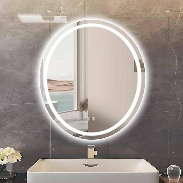24 in. W x 40 in. H Oval Frameless LED Light Anti Fog Wall Bathroom Vanity Mirror in Backlit Plus Front Lighted