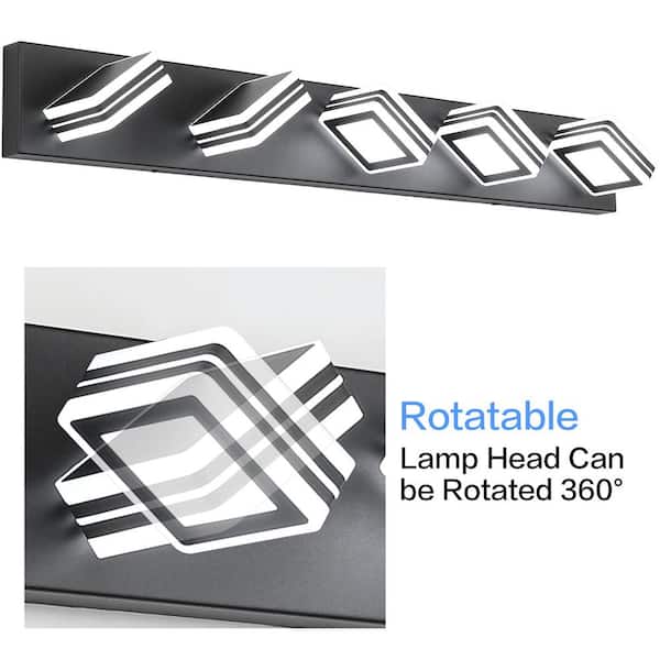 32.3 in. 5-Light Black LED Modern Acrylic Bathroom Vanity Light Fixtures, Matte Black Modern Wall Lighting Fixtures