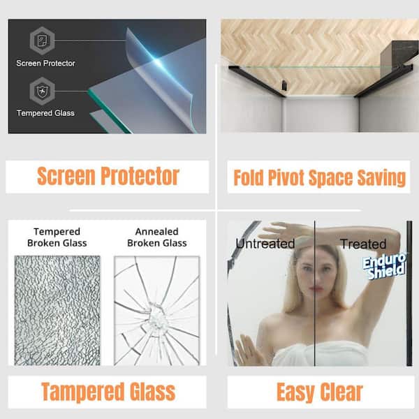 34 to 35-1/2 in. W x 72 in. H Pivot Swing Frameless Shower Door in Black with Clear Glass