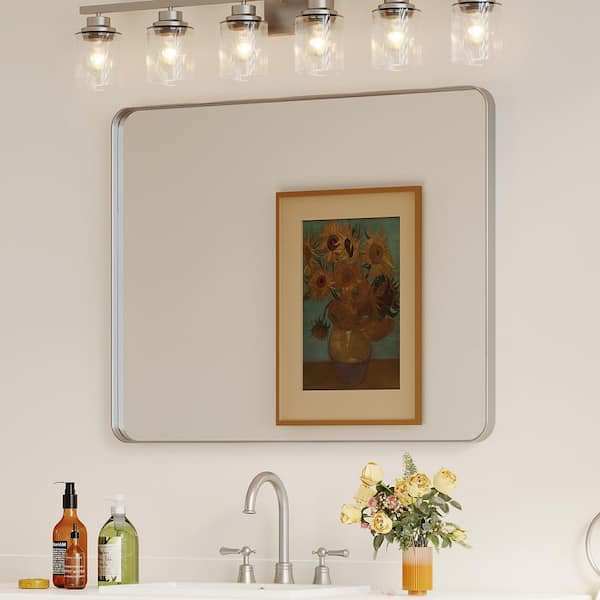 40 in. W x 32 in. H Rectangular Aluminum Framed Wall Bathroom Vanity Mirror in Silver