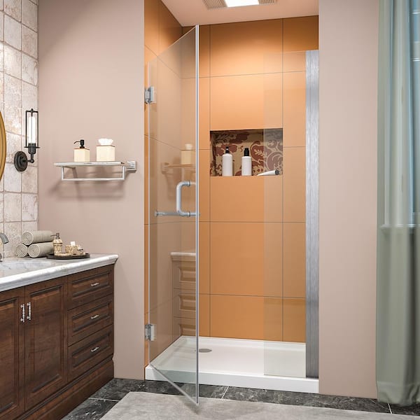 44 in. W x 72 in. H Pivot Semi Frameless Shower Door/Enclosure in Stainless-Steel with Clear Glass