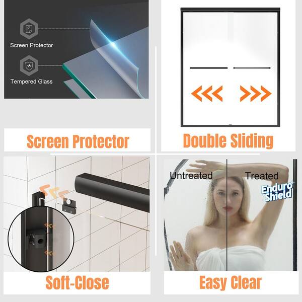 50 in. - 54 in. W x 72 in. H Sliding Framed Shower Door in Matte Black with Clear Glass