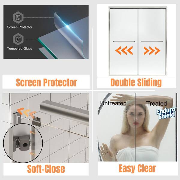 56 in. - 60 in. W x 72 in. H Sliding Framed Shower Door in Brushed Nickel with Clear Glass