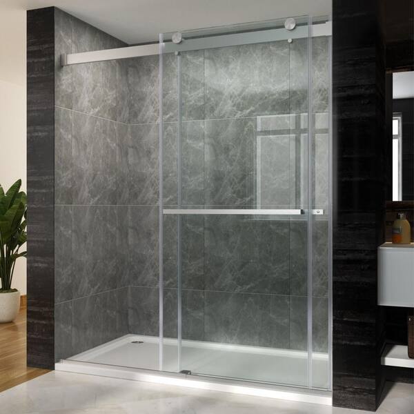 60 in. W x 72 in. H Sliding Semi Frameless Shower Door/Enclosure in Stainless-Steel with Clear Glass