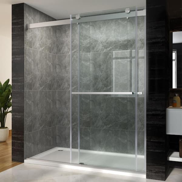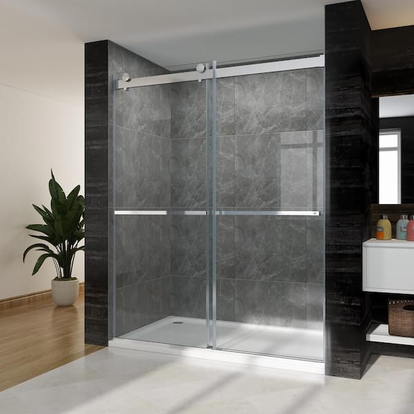 60 in. W x 76 in. H Sliding Semi Frameless Shower Door/Enclosure in Stainless-Steel with Clear Glass