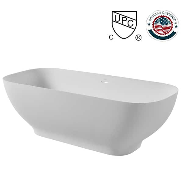 67 in. Double Slipper Stone Resin Flatbottom Soaking Bathtub in Matte White