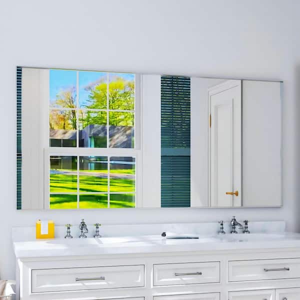 72 in. W x 32 in. H Rectangular Aluminum Framed Wall Bathroom Vanity Mirror in Silver