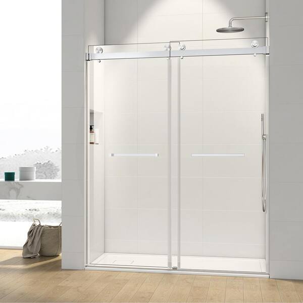72 in. W x 76 in. H Sliding Frameless Shower Door Soft Close in Brushed Nickel with Clear Glass