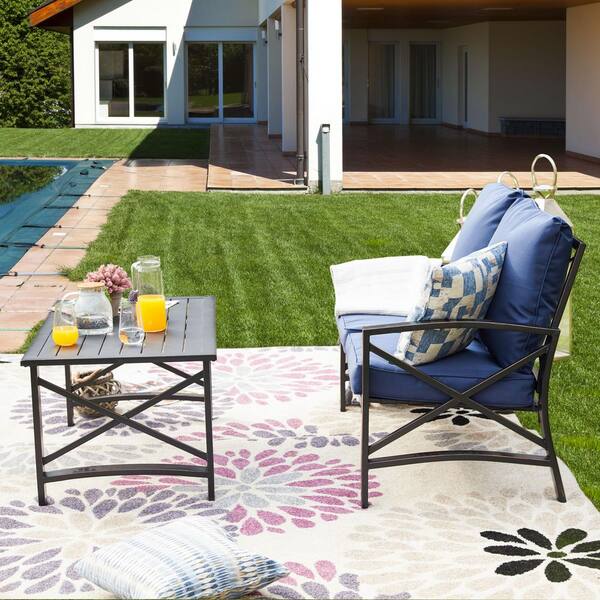 2-Piece Metal Outdoor Chat Set with Blue Cushions