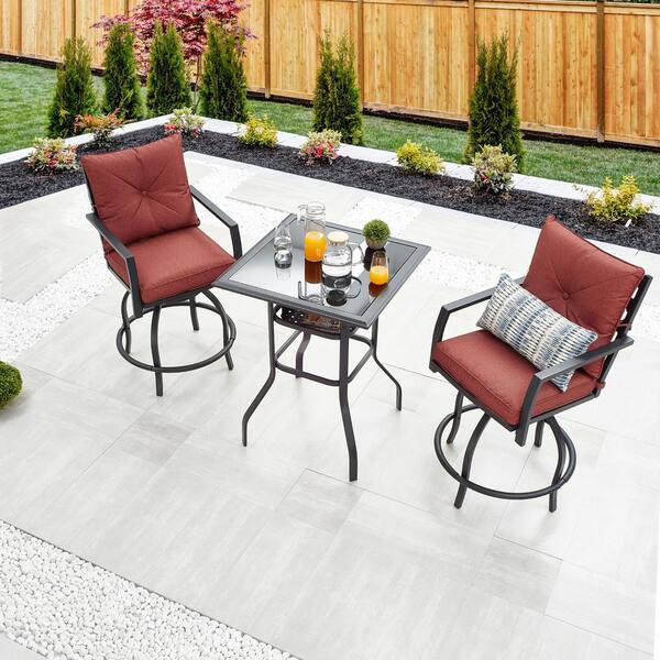 3-Piece Metal Outdoor Bistro Set with Red Cushions