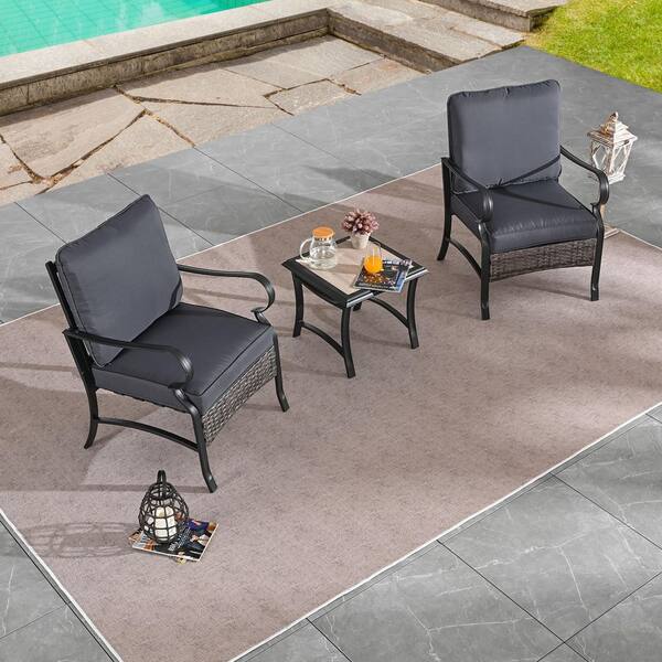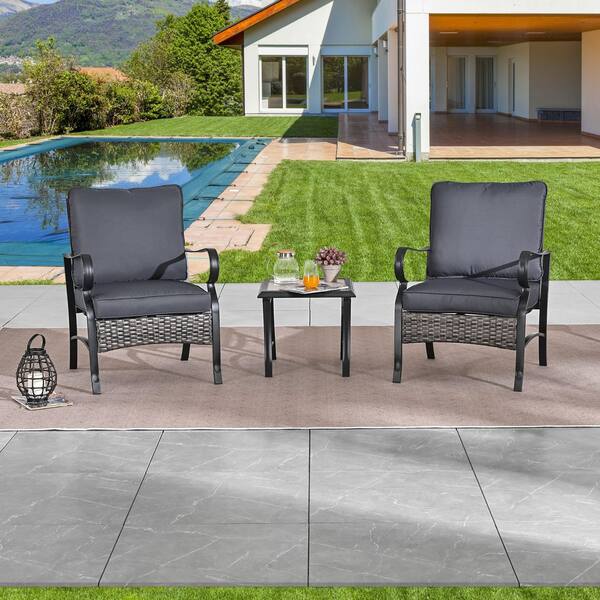 3-Piece Metal Outdoor Conversation Chairs Set with Grey Cushions