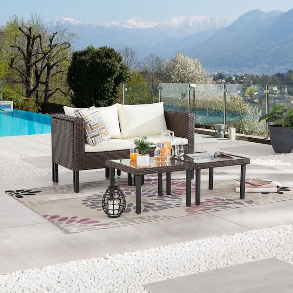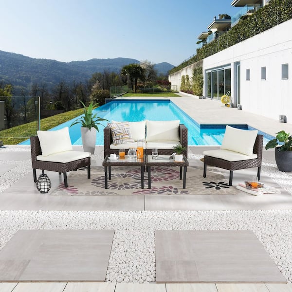 6-Piece Modular Wicker Outdoor Conversation Set with Ivory Cushions