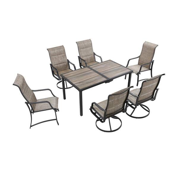 7-Piece Faux Woodgrain Table Rectangular Outdoor Dining Set
