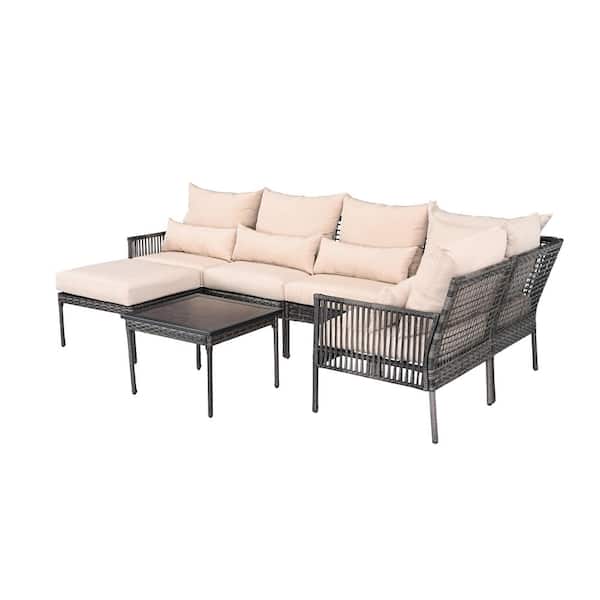 7-Piece Wicker Patio Conversation Set with Beige Cushions