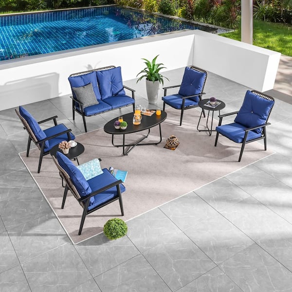 8-Pieces Metal Patio Conversation Set with Blue Cushions