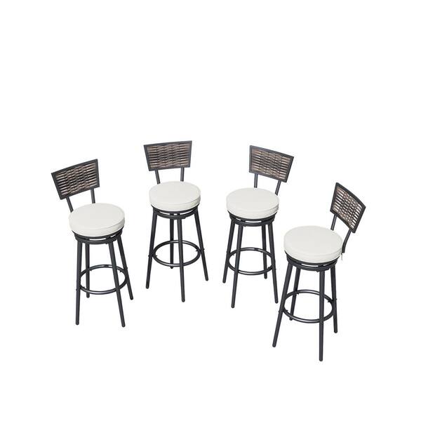 Swivel Metal Outdoor Bar Stool with White Cushion (4-Pack)