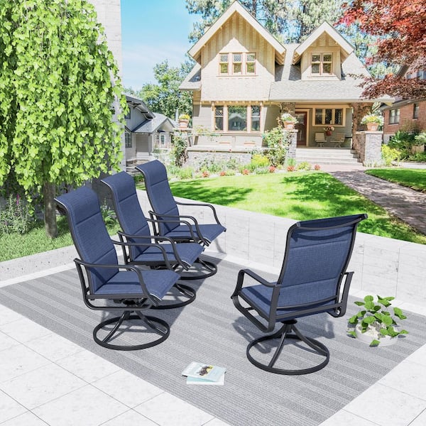 Swivel Metal Outdoor Dining Chair in Blue (4-Pack)
