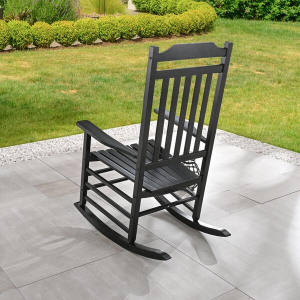 1-Piece Black Wood Outdoor Rocking Chair