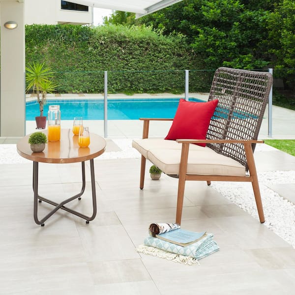 2-Piece PE Wicker Patio Conversation Set with Beige Cushions and Oval Coffee Table